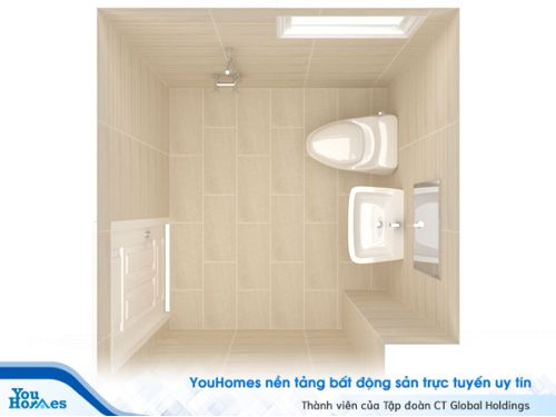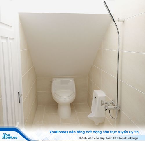 Phòng vệ sinh ở các tầng tận dụng không gian bên dưới cầu thang hiệu quả, giúp tối ưu hóa diện tích sử dụng. Tông màu sáng được sử dụng giúp căn phòng trở nên rộng rãi và thoáng đãng hơn.