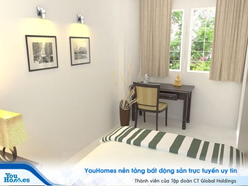Khu vực phòng ngủ sở hữu tông màu nhẹ nhàng, giúp người sử dụng có được sự thoái mái. Các ô cửa sổ nằm tại các vị trí hợp lý tận dụng được nguồn ánh sáng tự nhiên cho căn phòng.