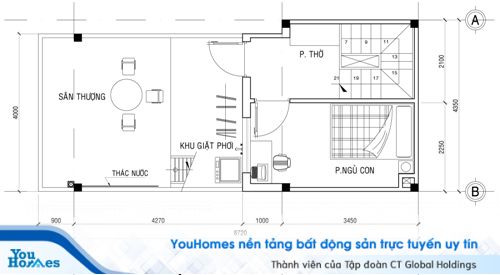 Phương án thiết kế và phân bổ các phòng cho căn nhà kích thước 8,7x4 m, nở hậu 4,35 m, 4 tầng, diện tích sử dụng 175m2 cực kỳ hợp lý chỉ với hơn 700 triệu đồng.