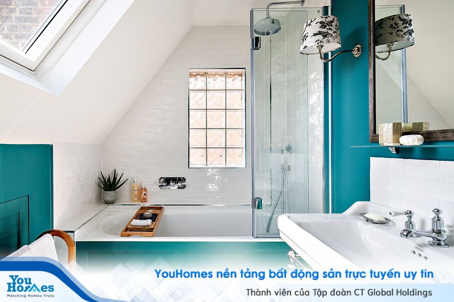 Khi nói đến màu sắc phòng tắm mùa hè, màu xanh và trắng nổi bật như là tông màu được ưa thích nhất. Nhưng năm nay, hãy thử một thứ gì đó táo bạo và khác biệt hơn bằng cách sử dụng teal (màu xanh lá cây ánh xanh lam). Một màu sáng hơn nhiều so với màu ngọc lam và linh hoạt hơn rất nhiều trong việc sử dụng nó, teal trong nhiều sắc thái của nó thực sự có tác động lớn.