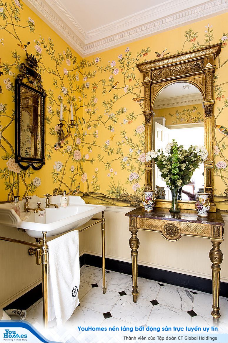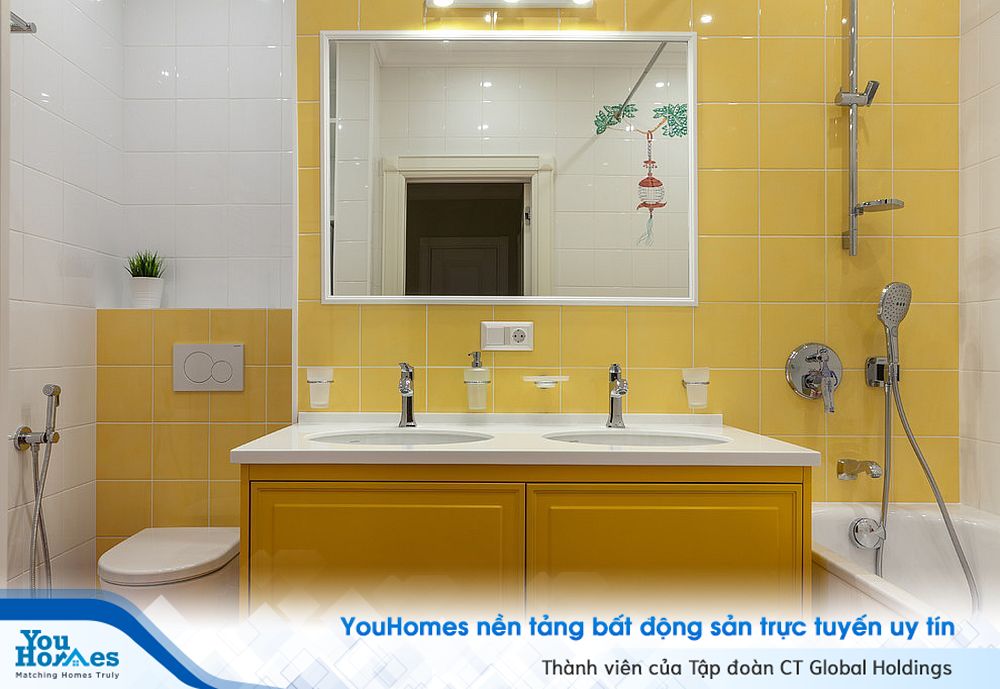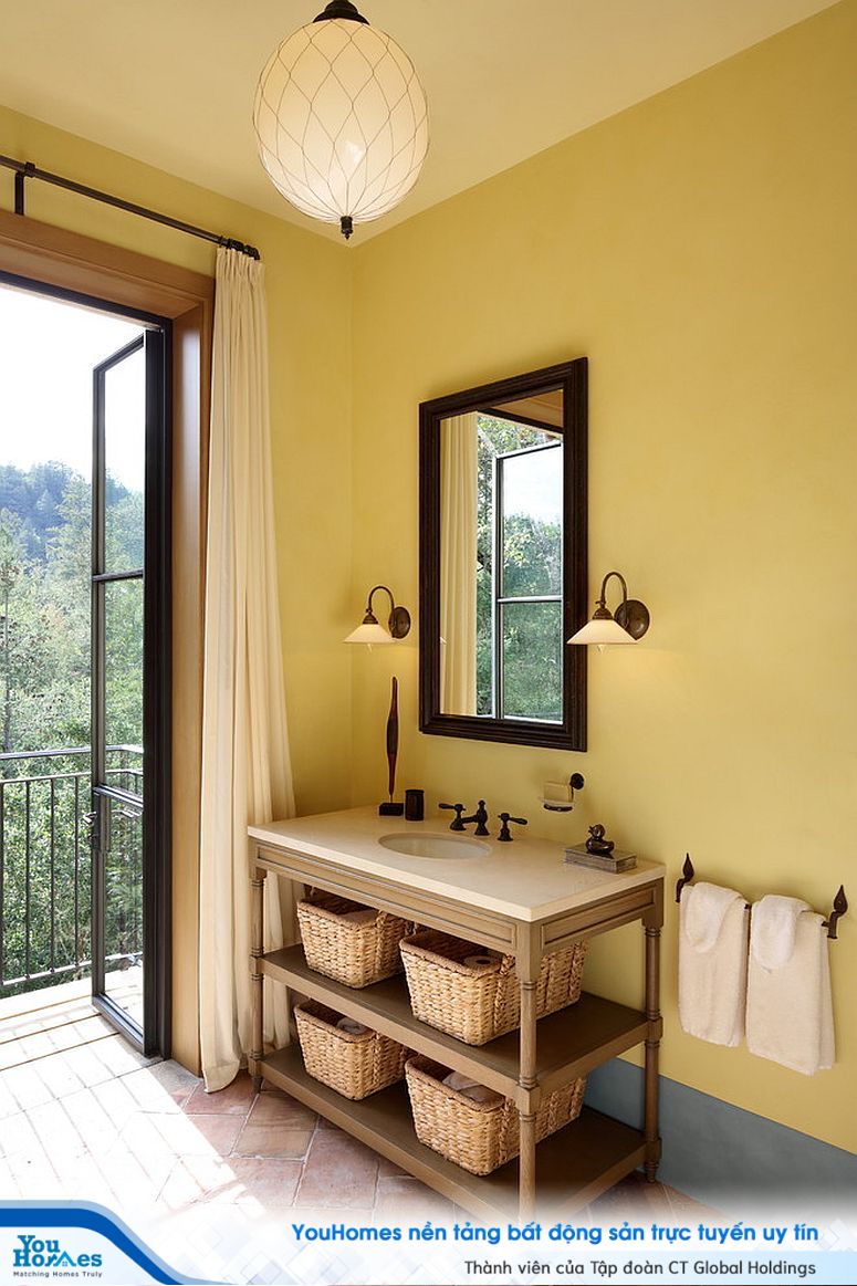 Sử dụng màu vàng trong phòng tắm theo phong cách đồng quê sang trọng.