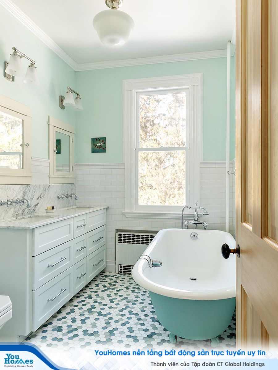 Để trang trí cho phòng tắm, bạn có thể sử dụng các tông màu sắc tươi sáng, mang đến cho căn phòng một cái nhìn mới mẻ. Từ màu xanh tuyệt vời và màu vàng phổ biến đến màu xanh pastel.