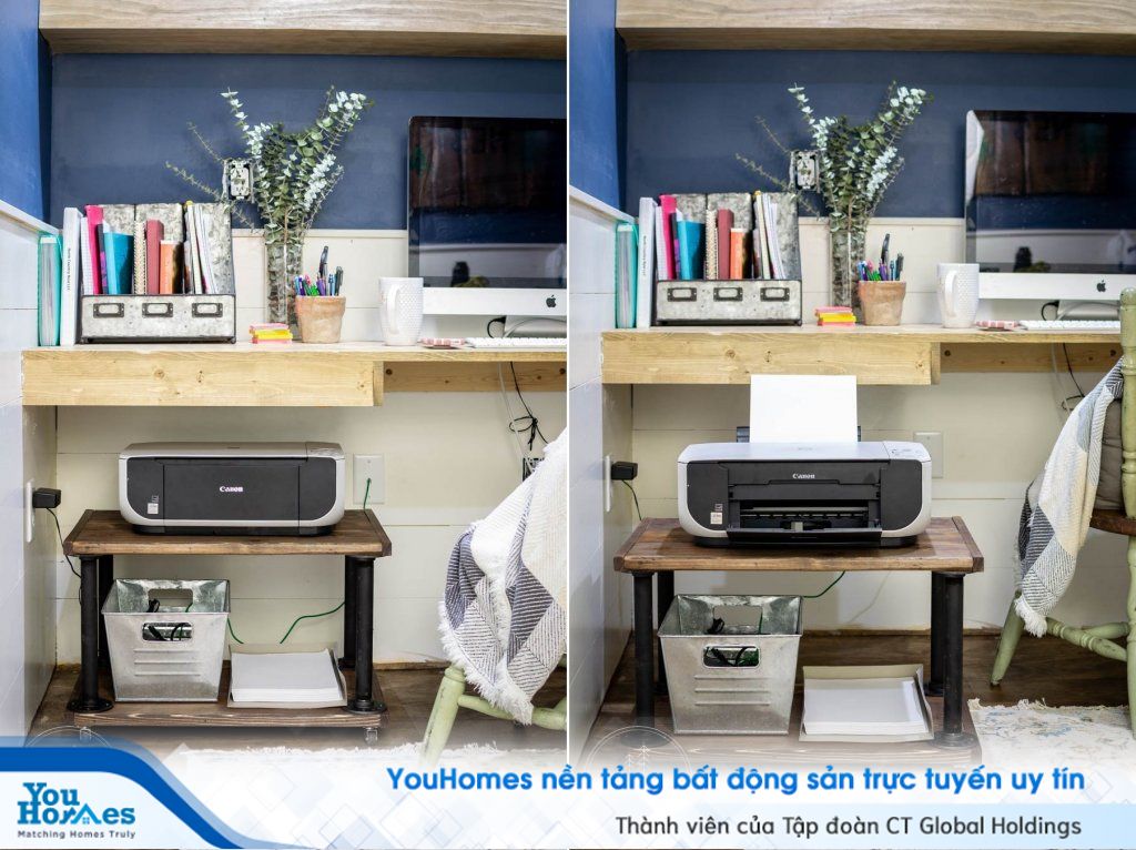 Với máy in trong phòng làm việc, khi không sử dụng hãy đặt nó dưới bàn làm việc. Bằng cách này bạn sẽ giải phóng không gian trên bàn làm việc của bạn.