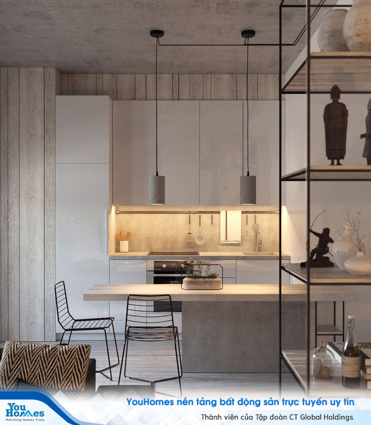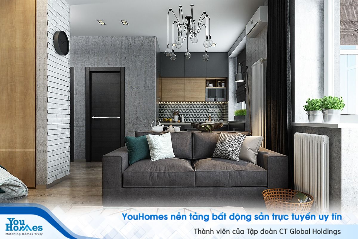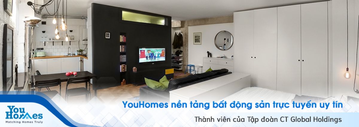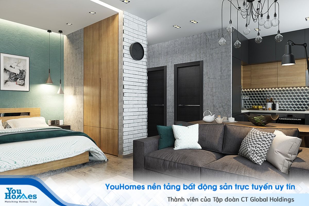 Còn đây là một căn hộ studio tinh xảo. Mỗi không gian đều khác biệt về mặt thẩm mỹ và chức năng, xen kẽ với các đặc điểm phối hợp thông minh để thống nhất không gian tổng thể.
