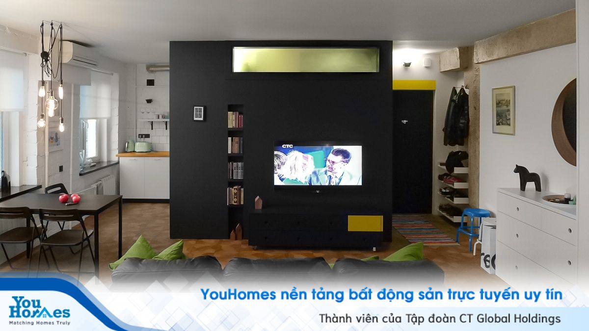 Căn hộ quy mô nhỏ này của một cặp vợ chồng trẻ, các nhà thiết kế đã mang đến một lớp trang trí sáng sủa và thiết kế đổi mới toàn bộ cấu trúc đủ không gian rộng rãi cho hai người.