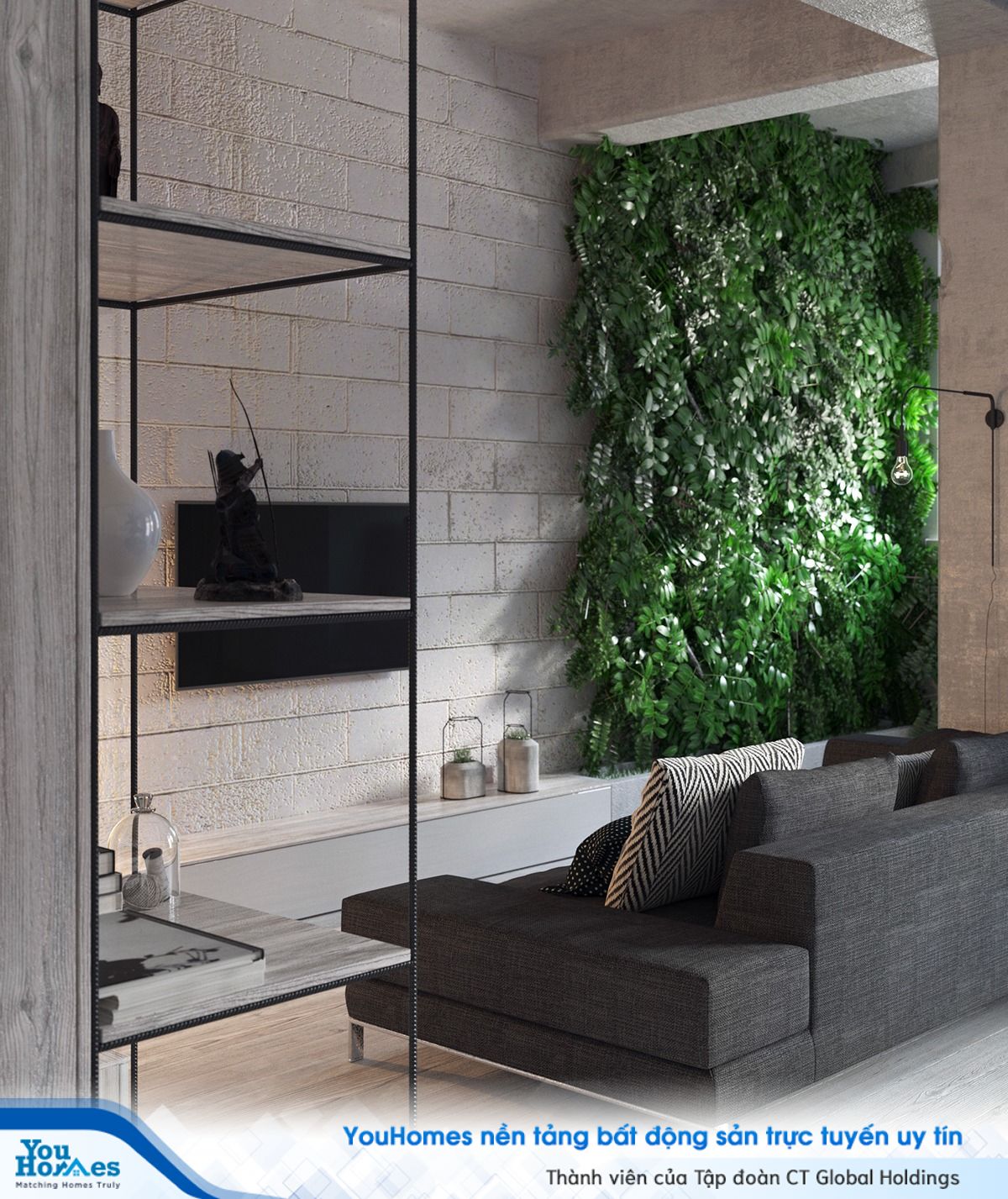 Căn hộ này cũng có diện tích 43m2 và được thiết kế một cách tối giản nhất. Dây leo xanh mát ở bức tường tạo điểm nhấn giúp cân bằng với các vật liệu công nghiệp - bạn không bao giờ có thể có quá nhiều cây xanh trong một không gian tinh tế hoặc tối giản.