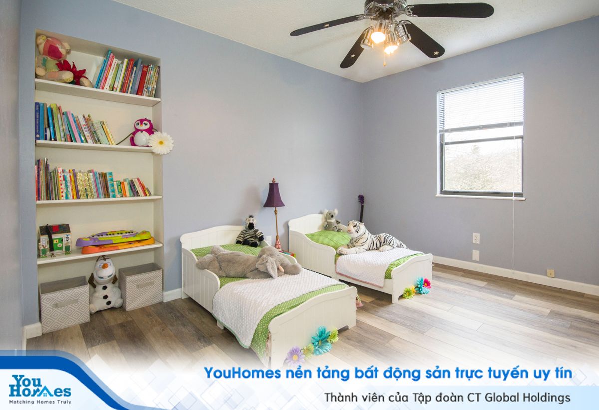 Phòng ngủ của trẻ em cần tích hợp thêm không gian để học tập và chơi. Chính vì vậy việc sắp xếp phòng ngủ trẻ em nên hợp lý về đồ đạc và không gian để trẻ có thể vừa học, vừa vui chơi và nghỉ ngơi trong chính căn phòng của mình. Gia đình có từ 2 trẻ em có thể sắp xếp 2 giường đơn hoặc giường tầng sao cho phù hợp với phong cách thiết kế cũng như hợp lý về mặt không gian.