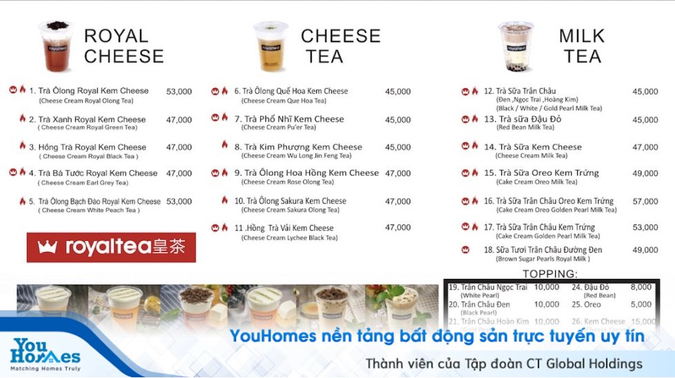 Chắc hẳn rằng nhiều người sẽ hoa mắt vì không biết lựa chọn cho mình thức uống nào vì thực đơn của Royal Tea rất phong phú và đa dạng. Khi cầm menu lên, một vài bạn đã thốt lên “ Mình muốn uống hết trà sữa ở đây quá! Nhìn loại nào cũng hấp dẫn quá!”.