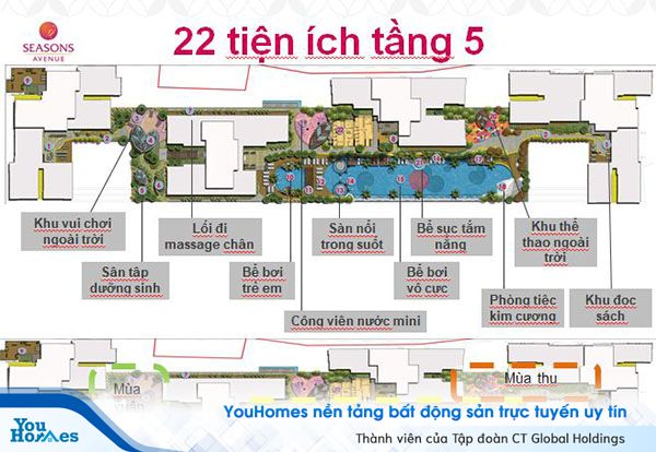 Tại Seasons Avenue, chủ đầu tư dành nhiều tâm huyết xây dựng chuỗi hơn 60 tiện ích khép kín dành cho nhiều thế hệ cư dân, đáp ứng tốt nhất mọi nhu cầu phù hợp với từng lứa tuổi khác nhau.