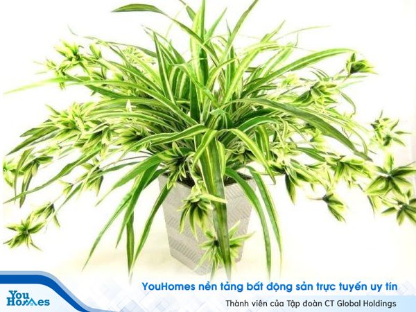 Cây dây nhện giúp bạn lọc formaldehyde, benzene phân tử trong không khí. Cây cũng khá phù hợp nếu bạn muốn trồng trong nhà vệ sinh để lọc bớt amoniac, vi khuẩn, nấm mốc gây hại. Đặc biệt, cây nhện có thể đặt trong phòng ngủ và phơi nắng 1 tuần/lần.