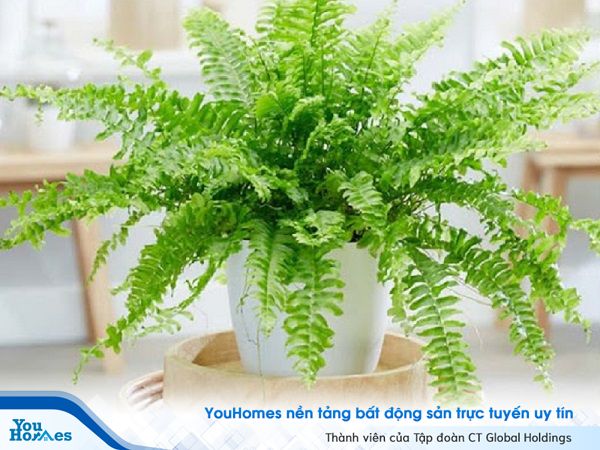Bạn có thể đặt một chậu cây dương xỉ trên giá sách, cạnh kệ tivi hoặc trong phòng ăn sẽ rất phù hợp đó. Cây dương xỉ là cây ưa ẩm nên bạn cần tưới nước thường xuyên để cây phát triển tốt.
