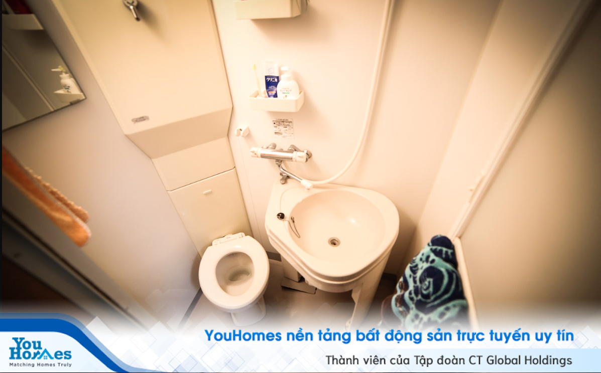 Khu vực phòng vệ sinh với phần vòi nước tại lavabo và vòi nước tắm được tích hợp giúp có thêm không gian sinh hoạt, tắm rửa.