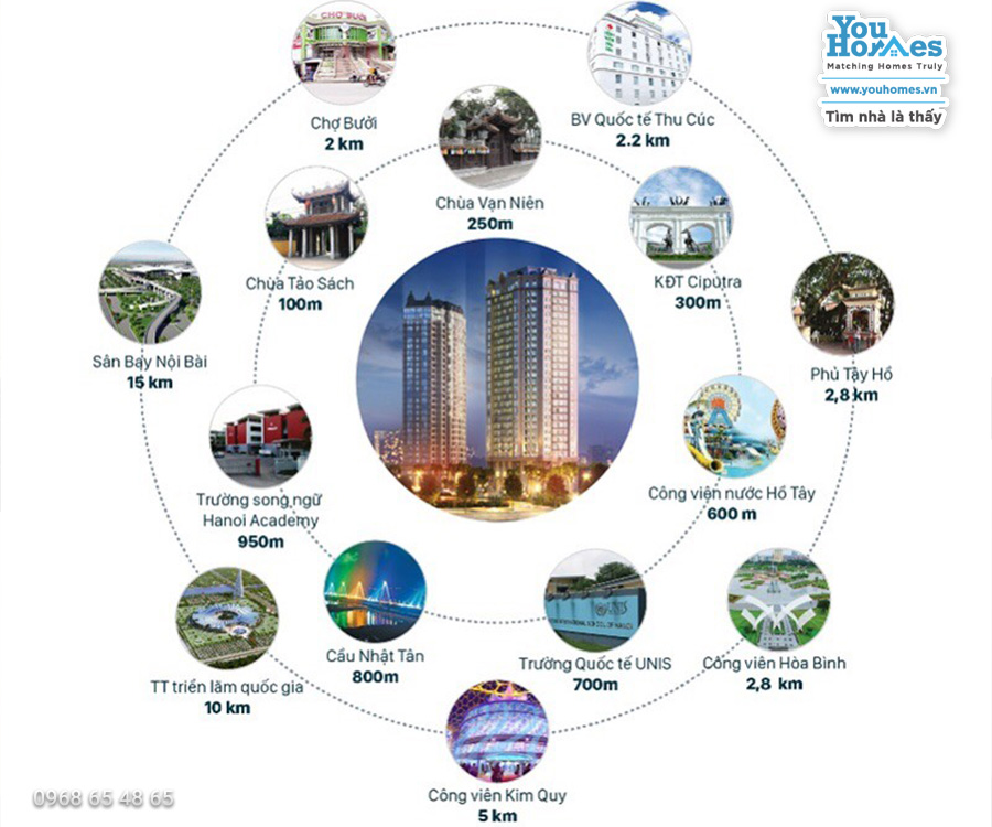 - Vị trí rất thuận tiện: gần công viên nước Hồ Tây ..... chỉ 3p đi bộ đến phố đi bộ Trịnh Công Sơn, 3 phút đến Phủ Tây Hồ, 15 phút ra Sân Bay, 11 phút đến Hồ Hoàn Kiếm, quảng trường Lăng Bác, Thảo Cầm Viên.