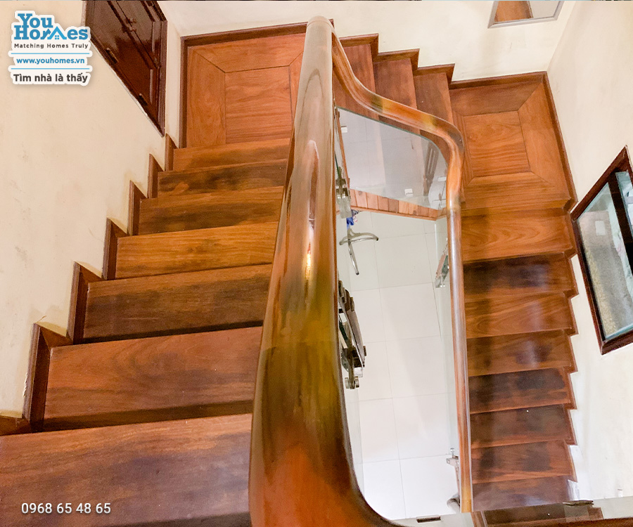 - Hệ thống cầu thang làm bằng gỗ tự nhiên rất chắc chắn và được sơn bóng rất đẹp