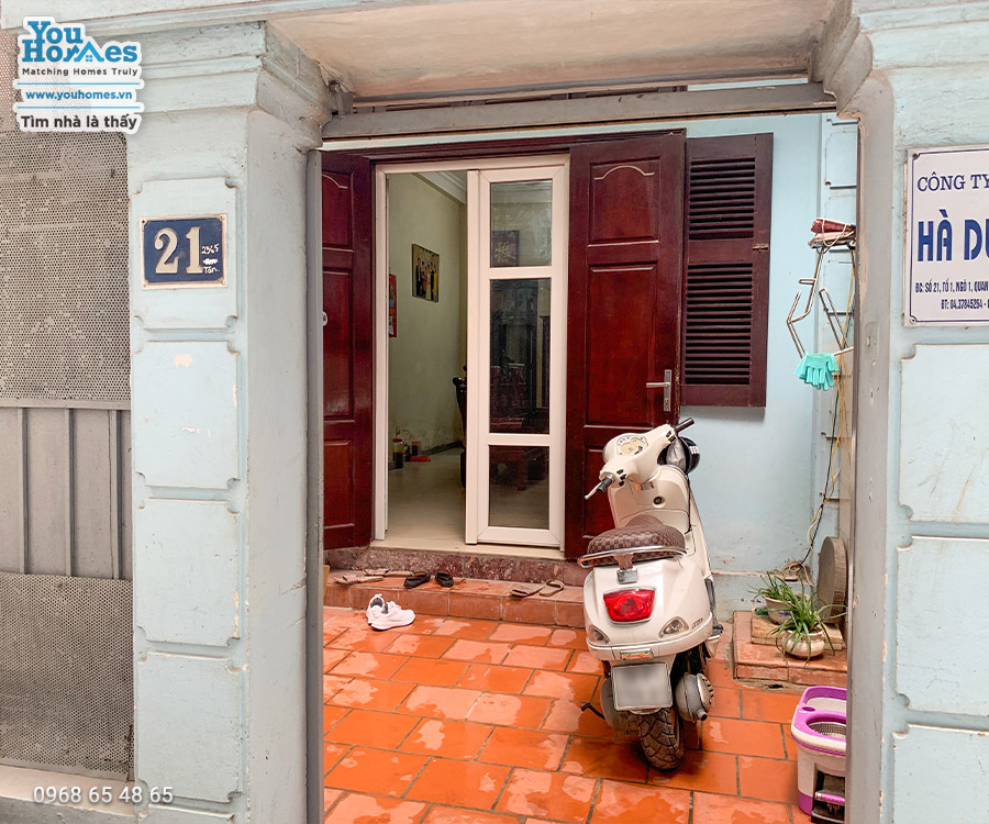 - Ô tô đỗ cách nhà 20 m. Nhà có sân phía trước có sân để xe máy rất tiện và an toàn.