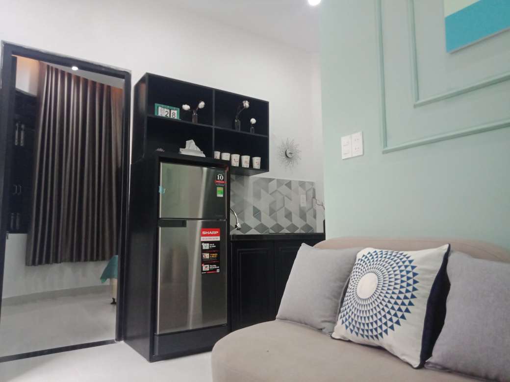 Đầy đủ tiện nghi: giường lớn, bếp và đồ dùng bếp, tủ lạnh, tivi 32inch, điều hoà, máy nóng lạnh, máy giặt, sofa, tủ quần áo, bàn ăn, kệ TV,…