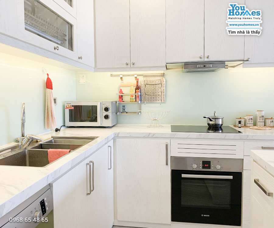 - Căn hộ được trang bị thiết bị vệ sinh cao cấp, có cả bồn tắm, máy rửa bát, chủ nhà đã đầu tư đầy đủ nội thất, khách thuê chỉ cần dọn vào ở mà không cần sắm sửa gì thêm.
