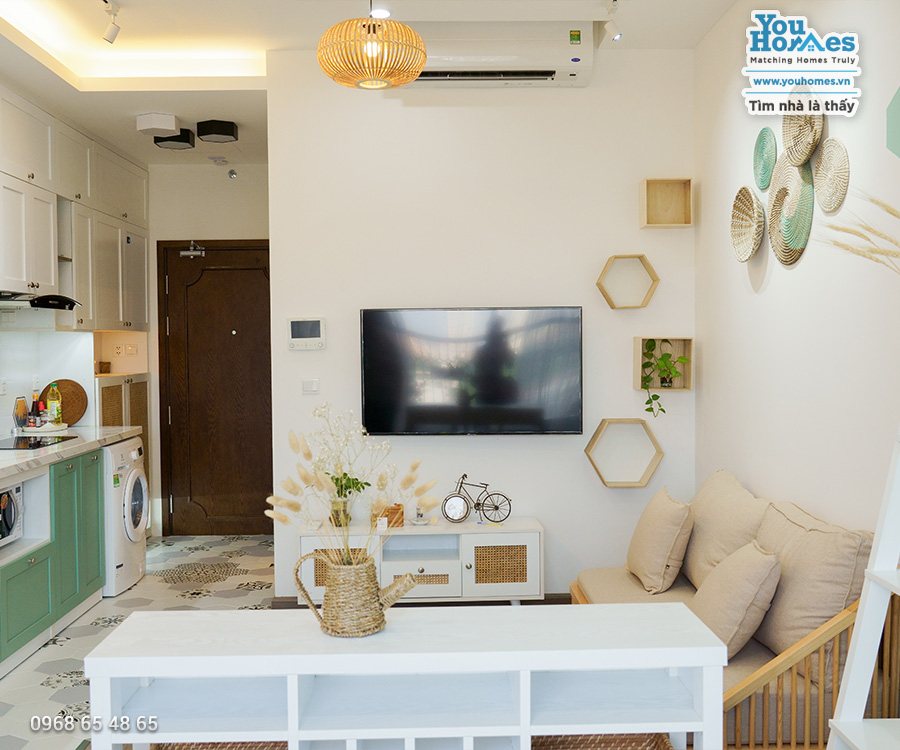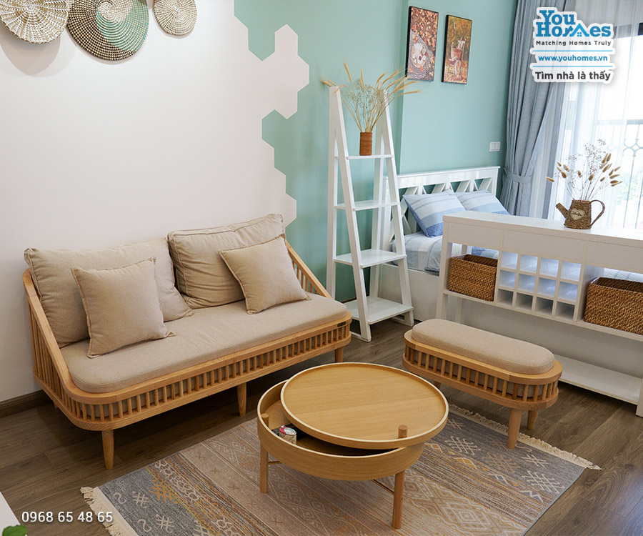 - Căn hộ được thiết kế & trang bị với nội thất đồng bộ với những đường nét, chi tiết mang hơi hướng phong cách Vintage Đông Dương, nhưng vẫn nhẹ nhàng & tinh tế, tạo nên 1 không gian vô cùng thoáng, hơi hoài cổ bởi những cánh cửa mây, bông lúa khô & những đồ decor mộc mạc ... gần gũi thiên nhiên; tạo không gian thoáng, trần cao hơn, diện tích sử dụng thực tế rộng hơn các căn bằng diện tích cùng dự án.