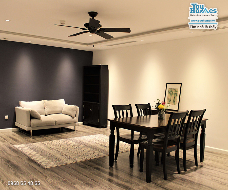 2. Phòng khách: một cạnh phòng ngủ, một cạnh khu vực ăn uống
