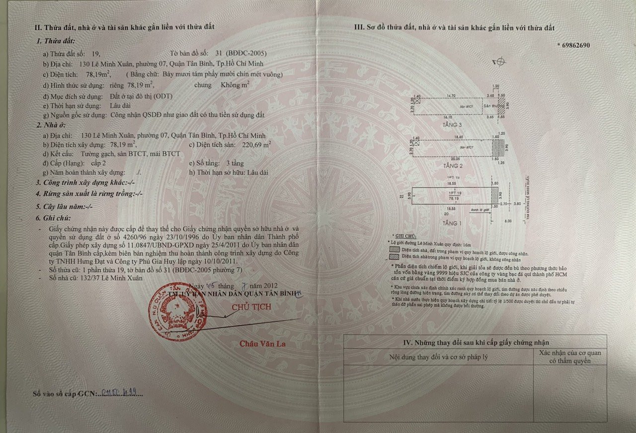 Địa chỉ : Đường Lê Minh Xuân, Phường 2, Tân Bình, Tp. Hồ Chí Minh. Diện tích: 80 m² (4*20m).