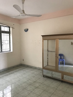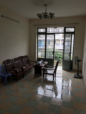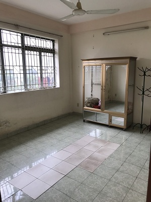 Căn hộ gồm: 1 phòng khách, 3 phòng ngủ rộng thoáng mát, 1 nhà vệ sinh. Phòng khách có bàn ghế gỗ, phòng ngủ có tủ nhôm quần áo.