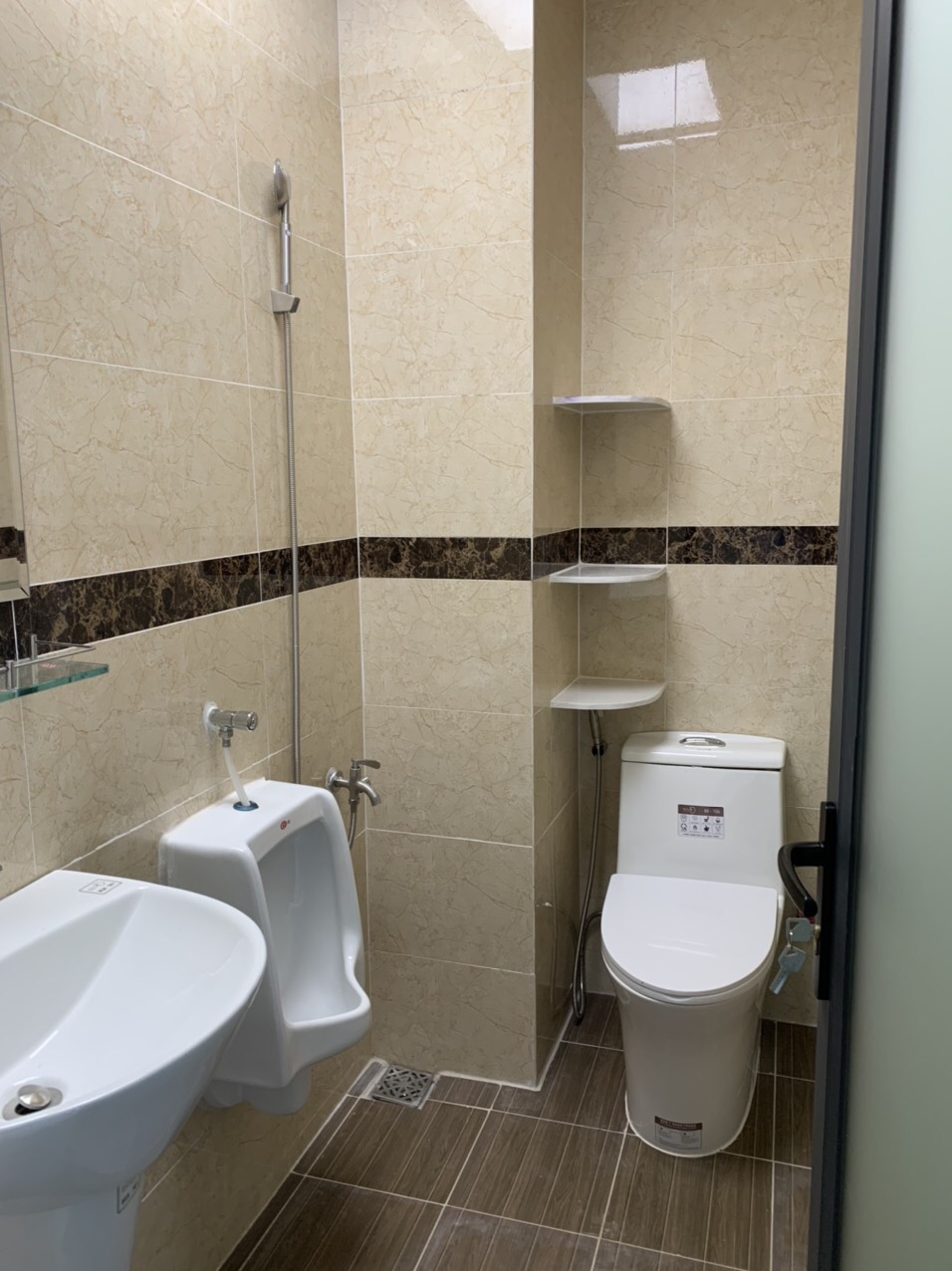 Thang máy, thang bộ, nhà vệ sinh cuối mỗi tầng. Máy lạnh âm trần, thiết bị phòng cháy chữa cháy. Nhà mới 100%.