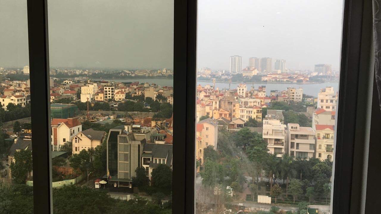 Căn hộ có 5 điều hoà, đầy đủ đồ. Ban công view hồ Tây và cầu Nhật Tân.Liền bếp là khu giặt sấy đủ máy giặt, sấy