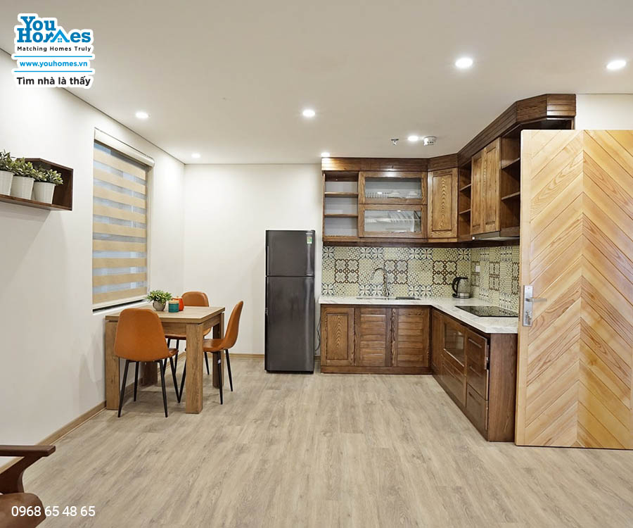 căn hộ kép cho thuê Airbnb hoặc lâu dài, phòng khách (không có ban công) nhìn ra chợ hoa Quảng An, nội thất tiện nghi đầy đủ.