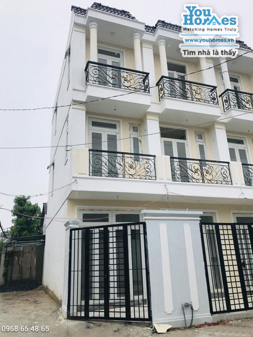 Nhà 1 trệt, 2 lầu, 3WC, 4PN, phòng bếp, phòng khách, sân trước để xe, sân sau phơi đồ, ban công rộng rãi, nhà trống không có nội thất