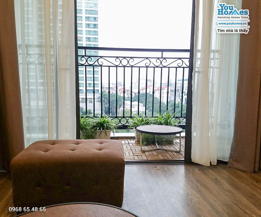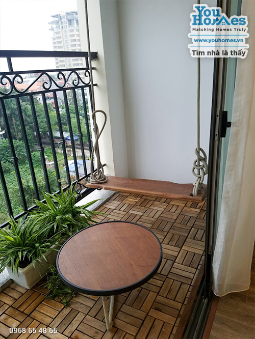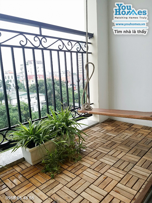 - Ban công chính hướng Đông Nam mát mẻ, view hướng ra đường đường Đặng Thai Mai và khách sạn Fraiser Suite, bên dưới là Ao Giặt Lụa trên đường vào Phủ Tây Hồ.