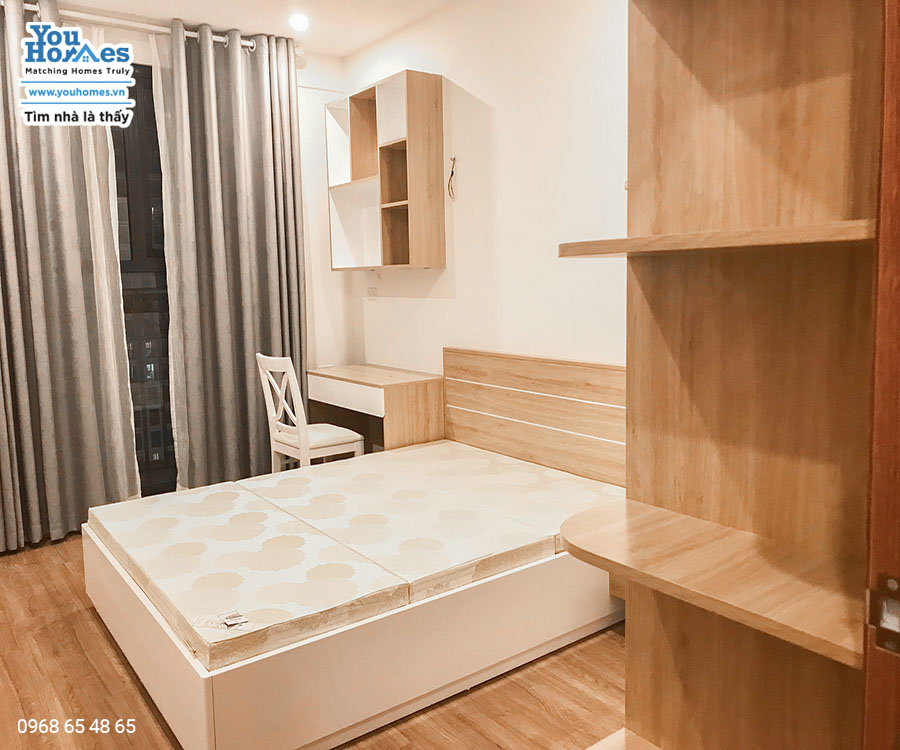 - Căn hộ Diện tích 110m2, 3 phòng ngủ. Nội thất full mới 100% cao cấp, tương đối đầy đủ, gồm: Sàn gỗ công nghiệp nhập khẩu dày 12mm, Trần thạch cao, Sơn Jotun, Thiết bị vệ sinh ToTo nhập khẩu, Vách tắm đứng cường lực, Bình Nóng Lạnh Ferori, Điều Hòa DaiKin, Hệ thống cửa gỗ cao cấp,…vv. View nhìn vào nội khu, thoáng mát và yên tĩnh.