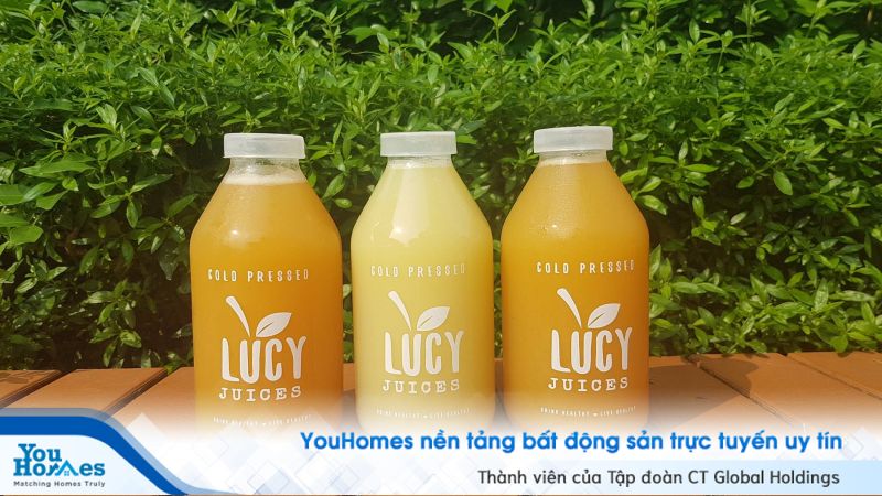 - Nhà Lucy sử dụng công nghệ ép lạnh bằng máy Kuvings nên giữ được nguyên các vitamin có trong hoa quả. Hoa quả để ép có nguồn gốc xuất xứ rõ ràng, được nhập từ các địa chỉ tin cậy như: Bác Tôm, Tâm Đạt, Vinmart...