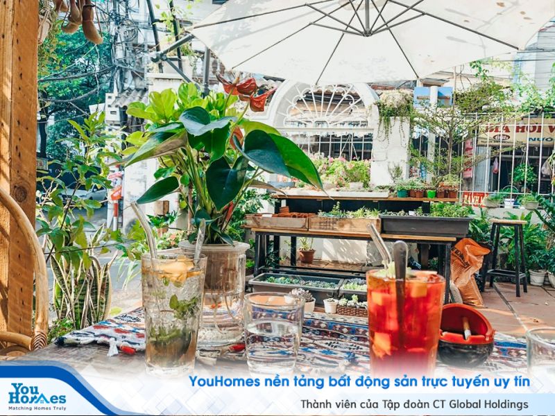 Được ưa thích hơn cả đó là bàn ghế gỗ đặt ngoài trời, khăn trải bàn và đệm ghế với họa tiết thổ cẩm đậm chất vintage. Những nàng nào thích sống ảo thì đây thực sự là lựa chọn tuyệt vời. Chẳng cần đến máy cơ, cũng chẳng cần phải sửa soạn trang phục, chỉ với một chiếc máy ảnh có khả năng lấy nét và ....cười, là bạn đã có được cả trăm bức hình ấn tượng.